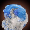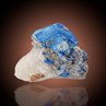 Perched aesthetically atop a white marble matrix is a well formed twin crystal, measuring 2,8 cm in diameter, of Sodalite from famed Sar-e-Sang of Koksha Valley in Afghanistan. The crystal is almost dull and translucent with an eye-pleasing blue colour with less white parts. It exhibits a superb salmon pink colour under LW-UV light and is associated with glistening and brassy Pyrite. This is a relatively large, and unusually twinned crystal that is nicely displayed on a balanced matrix - all in all a rare combination.