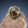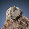 A single glassy and gemmy, lime green crystal of Andradite, measuring 1,3 cm in diameter, is aesthetically perched atop a natural pedestal of limestone. The garnet is complete all around with sharp edges, distinct faces and superb luster. A fine, nicely balanced mini of high quality for its good colour, and excellent translucency.