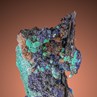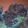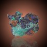 A fine combination piece features a shard of gossan matrix, richly covered with azure-blue Azurite and medium-green Malachite, a typical combo of the site. The Azurite is well formed, sharp edged and highly lustrous. Azurite specimens are highly appreciated from the local collectors and this is a good sample.
