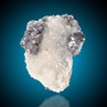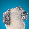This contrastful old-time specimen hosts a number of tightly intergrown, multifaced Galena crystals, nicely and contrastful set on a carpet of white and glistening Quartz. The Galena here is sharp edged, well terminated and features a fine metallic sheen. This classic piece is in exceptional fresh condition and comes with 2 old labels