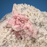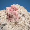 Here we have a wonderful Rhodochrosite-on-Quartz specimen with light chewing gum pink Rhodochrosite rhombs with nice porcelain luster, contrastful perched on a carpet of white, slightly sceptered Quartz crystals. Both species are well formed, sharp edged and nicely terminated. The combo of the Rhodos with the small Quartz scepters is amazing. A great piece from the Dr. Gerd Tremmel (Gerdtremmelite) collection