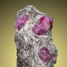 Here we have a bunch of translucent, maroon-coloured Ruby crystals embedded in typically matrix. They are superbly formed and sharp edged with fine triangular pattern along the surface. The luster is great as well and the overall aesthetics very good. A nice piece with multifaced and partly doubly terminated crystals to 1,3 cm on edge.