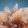 This highly aestehtic specimen features a cluster of well formed, tapered Calcite crystals to 4 cm, with medium brown base and beige terminations. The crystals here are sharp edged and lustrous with almost perfect tips. Very minor bruisning at this beautiful Moroccan specimen from Irhoud Mine of Youssoufia province.