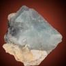 Here we have a large octahedron of light bluish-green Fluorite from Kara Oba of Karaganda oblast in Kazakhstan. The major crystal measures to over 8 cm across and is slightly intergrown with a smaller "cousin". The crystal has good luster, fine transparency and a slightly stepped pattern along its lustrous surface,- and it is almost pristine at the display face. Unfortunartely the pics cannot convey the aesthetics and three-dimensionality of the piece, so this one is much better in person