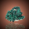 A typical and very aesthetic specimen that was recovered in the early 2010s. A Malachite pseudomorph after Azurite from the Milpillas Mine in Sonora, Mexico. Deep green, chatoyant Malachite crystals with a very attractive satin luster on a light gray matrix. The multiple crystals show nice terminations, some are doubly terminated. The main crystal is a whopping 2.8 cm tall. A pristine display side makes for an incredible beautiful and elegant specimen.