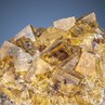 Honey yellow Fluorite cubes measuring to 2.4 cm on edge from a ancient mine in Saxony with a checkered history from the first Silver finds around 1200 to the early 17th century when Cobalt was the main ore. The crystals of this piece are sharp with a vitreous luster. They are translucent with clearly distinguishable darker phantoms and included with Chalcopyrite micro crystals. This might not be a pristine specimen but it is still a very aesthetic piece with zero chances of new finds. The mine is now a tourist attraction.