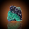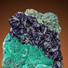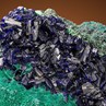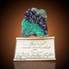 This is a classic Azurite-Malachite combination from the classic Tsumeb Mine in Namibia. A miniature with sharp, deep royal blue Azurite crystals with a vitreous luster perched on a bed of velvety, grass-green Malachite needles. A historic specimen that comes with an old label from the Dipl.-Ing. W. Maucher mineral dealership in Munich, Germany, handwritten in Sütterlin script. The label has the Schellingstraße 73 address which dates specimen and label as pre 1944. The shop was moved to Pasing, a part in the west of the city of Munich after the original location was destroyed during an Allied bombing raid during WWII.