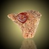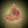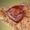 A 1.3 cm measuring, burnt-orange colored Garnet crystal from the Piedmontese Ala Valley, which is characterised by the local tourist authority as "the steepest, narrowest and wildest." The garnet is a Grossular var. Hessonite perched on a bed of tiny, sparkling crystals of the same species. The Hessonite crystal is sharp, translucent, gemmy, and with a vitreous luster. The edges of the crystal show a pronounced step texture. This is a very good Piedmontese specimen with only very minor imperfections.