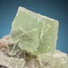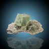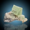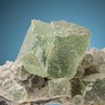 A Russian Fluorite on a matrix of sparkling Quartz crystals. What a contrast! The Fluorite is bottle-green in color and translucent with frosted crystal faces. A typical Dalnegorsk Fluorite specimen with very few dings and a great aesthetic appeal.