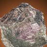 Two rare species on one specimen. Dark brown Lomonosovite, a phosphate species, and Murmanite, a light purple-flesh colored silicate as phenocrysts in a pegmatite matrix. The Rasvumchorr Mine, closer the Finland than Moscow, is mined for Apatite, opened in 1954, and now a huge open-pit quarry.