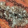 Water-clear Adamite crystals with a slight greenish hue densely pack a vug in a typical gossan matrix. The sparkling crystals are sharp with interesting three-sided crystals faces. Some of the smaller crystals seem yellowish-olive because of the color of the host rock shining through. A very good specimen in pristine condition from the Ojuela Mine which is considered by some as probably Mexico´s greatest mineral locality. It has been mined for Silver, Lead and Zinc, as well as Copper and Gold for 350 years since it was discovered by the Spanish in 1598. And did you know that Adamite is a classical fluorescent mineral since the discovery in 1946 of large esthetical fluorescent samples in the Ojuela Mine?