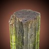 A nice dark olive-green single Tourmaline miniature specimen from the well-known granite pegmatite locality which belongs to the Araçuaí Pegmatite District of the Eastern Brazilian Pegmatite Province. The crystal cluster of two parallel crystals is very translucent in the center with darker sections on top and bottom. Good triangular terminations, typical striation on the prism faces and a vitreous luster characterize beauty. BTW, the southeastern Brazilian state of Minas Gerais is home to 586 valid mineral species and a whopping 54 type localities.