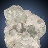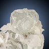 This is a beautiful Chinese Fluorite-Calcite combination specimen with flattened, sharp, white Calcite crystals perched on light green Fluorite crystals with a cuboctahedral habit. The crystal faces of the translucent Fluorite are frosted with a matt vitreous luster. The display side is almost pristine with good overall aesthetics. This is one of these specimens that are much better and more three-dimensional in person. From the Xianghuapu Beryllium mine, which produced much of the green fluorite seen on the market in recent years.
