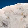 A very interesting ore specimen with Kawazulite with plenty of Gold flakes visible to the unaided eye, embedded it a milky Quartz matrix. Kawazulite, a very rare Bismuth-Tellurium selenide has a silver color and a metallic luster, and the Gold flakes don’t really need describing. The specimen is from Jilové (German Eulau), a former Gold mine with a long history that dates back to the Middle Ages.