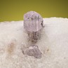 A faint lilac-colored 4-sided Marialite crystal is perched on a white marble matrix. The species from the Scapolite series is gemmy, well terminated, with excellent striation parallel to the prism faces. On what I consider the back of the specimen, some smaller Marialite fragments are embedded in matrix. A superb specimen from the Afghani locality Sar-e-Sang with incredible contrast.