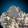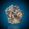 Sharp Tetrahedrite crystals to 1,4 cm in the habit of tetrahedrons (polyhedron composed of four triangular faces) and with a submetallic luster are associated with translucent, reddish-brown Sphalerite crystals with a vitreous luster, brass-colored, striated, shiny Pyrite and small, elongated transparent to translucent Quartz crystals. A very beautiful and typical Casapalca combination specimen!