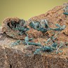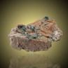 A colorful specimen of several deep sea green sprays of the rare phosphate Gormanite perched on sparkling Siderite rhombohedrons. The radial sprays have a very nice, strong satin luster. The sprays are nicely isolated and not just compact masses as often seen. Colorful, aesthetic, and with great contrast.