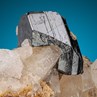 A rare specimen with an excellent single Rutile crystal on a Quartz matrix. This exceptional black metallic crystal to almost 2 cm is sharp, excellently striated and shows a strong metallic luster. A super aesthetic specimen with very little contact from a locality that Mindat describes as “… the most important occurrence of excellent Rutile (with black, lustrous crystals up to 5 cm) on all territory of the former USSR.”