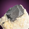 An exceptional black-gray Schwazite crystal on a white Dolomite-Quartz matrix. The crystal has a metallic luster, and especially on the display side, crystal is unusually well crystallized with sharp edges and good crystal faces. Schwazite is a Mercury-bearing variety of Tetrahedrite, and if varieties have a type locality, than this specimen is from one: Schwaz-Brixlegg where it was first described and named in the early 1870s. Definitely a top piece.
