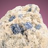 A lot of Corundum crystals from India are found in placer deposits. So it is a change of pace to have a specimen with crystals on matrix. Several blue Corundum crystals var. Sapphire crystals on/in cream-colored matrix. Some crystals display their trigonal symmetry; some are broken or not perfectly crystallized. Pretty rare stuff, rarely offered for sale.