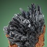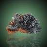 An exciting specimen with wonderful fan-like crystal clusters of elongated lath-shaped Stibnite crystals. They are steel-gray with striation parallel to the c-axis, they are sharp with mostly perfect terminations. They show a strong metallic luster with just a little tarnish. An incredibly aesthetic specimen with a great contrast of the Stibnite with the brown Siderite matrix.
