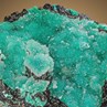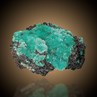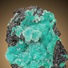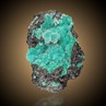 This is one incredibly colorful specimen. Sparkling transparent Quartz micro crystals cover deep green Malachite in a thin veneer. That gives a forest green color to the Quartz. This combination coats a black-gray matrix creating an incredible contrast. A typical and magnificent specimen from the abandoned Lucky Mine in the Orogrande Mining District where Copper was mined on a small scale between 1897 and 1929.
