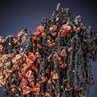 This piece represents probably the most sought-after Vanadinite specimen: Six-sided, brick-red Vandinite crystals on stalactitic jet-black Goethite matrix. The piece has only little imperfection but very good contrast, luster, color and aesthetics!