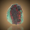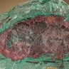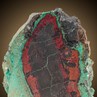 You are looking at a very unusual specimen: A polished, colorful ore specimen of “Kupferziegelerz” or Tile Ore which is a mixture of Cuprite and Tenorite. The center of the specimen is brick-red ore, while the rim is forest-green Malachite. As I said earlier, this is an unusual and very rare specimen.