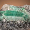A matrix specimen with a beautiful 2.8 cm measuring Emerald crystal: Sharp edges, hexagonal cross-section and gemmy translucent. This is really a great example for a Brazilian Emerald.