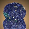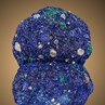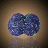 A miniature-sized specimen with two royal blue Azurite spheres measuring 2.6 cm in diameter, associated with little forest-green Malachite. The spheres consisting of innumerable sparkling Azurite crystals with very few imperfections are dotted with small milky Quartz crystals . A specimen is from the Morenci Mine, a huge open pit (2.3 x 1.2 km) operated since 1937, northeast of Tucson, Arizona.