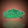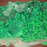 Let’s see if I get it right: This elongated specimen is covered with forest green, grainy Conichalcite crystals which are covered with countless bright green pseudomorphs of Bayldonite after Mimetite, and this mineral assemblage is accented by glassy, gemmy Calcite. This is a very interesting specimen from a mineralogical perspective, but also very colorful and aesthetic.