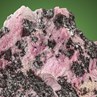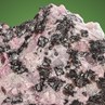 Steel-gray ore fragments of the rare Cobalt sulfide Linnaeite abundantly in pink-colored Cobaltocalcite matrix from the Congolese Copper-Lead-Zink deposits worked by the Kipushi Mine.