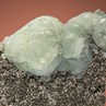 Light apple green spherical Prehnite clusters on typical matrix for the quarry. The very aesthetic clusters have an adamantine luster and are translucent. Aesthetic pieces such as this one were already rare when the quarry was active until its closure in 1966. There were significantly larger ones from there, however, rarely so beautiful with such good color and luster. This is classic material from an abandoned Andesite quarry north of Kaiserslautern, that was worked to produce cobblestones and gravel. Now turned into a nature reserve where collecting is strictly prohibited.