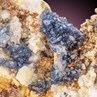 This is a specimen with very outstanding Scorodite crystal clusters on matrix. The clusters are made up of large, sharp blue-gray Scorodite crystals with a taper towards the terminations. Vitreous luster, translucency, and top color and contrast with a main aggregate over 1 cm. From finds in the 1990s recovered from the Drakelands Mine east of the town of Plymouth in the UK.