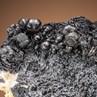 Excellent botryoidal Goethite masses on Barite matrix. Goethite is jet black, smooth with a satin luster, and the aggregates are to 0.7 cm in diameter. Great black and white contrast, very aesthetic and rather unusual for the Moroccan locality Mibladen.