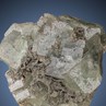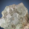 A specimen with light green Fluorite crystals to 2.5 cm. The crystals have parquet textures on the hexahedral crystal faces, a top luster, and are accented by sparkling brass yellow Pyrite crystals.