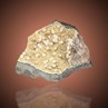 Cream white Gyrolite balls to 0.4 cm in diameter are strewn over a light mustard yellow colored warty matrix. A very rich specimen from the Pashan basalt quarries in the Indian state of Maharashtra.