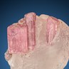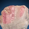 A very nice Himalaya piece! Clearly pink shortprismatic Elbaite crystals in a Quartz matrix. The crystals are partially doubly terminated with good terminal faces and typical striation on the prism faces. Great vitreous luster with a and translucent gemminess. What else can you wish for?