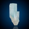 Beautiful, sky blue Aquamarine cluster from a rather unusual locvality,- Hutag Ull Ord, Bayankhutag District of Mongolia. The crystals are 4,6 cm tall with almost good terminations, good gemminess and great luster. Contact at the backside but anyway a great and rare Aqua piece.