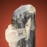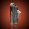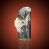 Unmistakable doubly terminated Stak Nala Elbaite with some bladed Clevelandite crystals at the center. The crystall is gemmy with oliv-green colour at the flat termination and colourless, with a hint of pink at the multifaced termination. The center of the crystal features a distinct dark green. Great and almost pristine 360° piece.