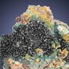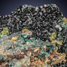 Actually Percylite is not a valid species,- it is rather a mixture of Pb-Cu-chlorides like Pseudoboleite, Diaboleite etc. But this is a rich piece with several nicely cubed small blue crystals, accompanied by larger, dark green, multifaced and relatively stout Atacamite crystals. Rare material, meanwhile almost disappeared from the market and consequently hard to come by.