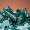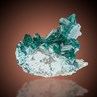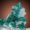 Nicely formed, emerald-green crystals of Dioptase up to over 1 cm richly perched on a Chrysocolla-coated Quartz matrix. The Dioptase here is highly lustrous, sharp edged and gemmy with slightly elongated prism faces. The terminations are almost intact. Very aesthetic, typical and colourful material with wonderful contrast from Omaue in Namibia.