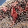 Nicely formed and deep cherry-red Rhodochrosite scalenohedrons from Uchucchacua Mine of Oyon, Pyru. The single crystals are sharp edged and highly lustrous with a size up to 1,6 cm. They are gemmy and transparent and showing a nice contrast to the black matrix. Classic material, now quite more hard to obtain than in the 90s. This is a fine, showy specimen.