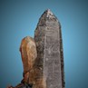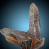 A v-shaped cluster of elongated, lucent, white-grayish Quartz crystals from the Erongo mountains of Namibia. The sharp edged Quartz is well developed, lustrous and features perfect tips. Many prism faces, especially on the backside showing several embedded, acicular Schorl crystals. A good thing from the late 1990s.