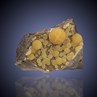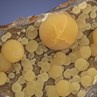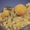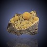 A beautiful specimen of Italian botryoidal Calcite, actually quite aesthetic in addition to being uncommon. Dozens of translucent yolk-yellow balls are set in a very showy vug against dark volcanic basalt. The 1,9 cm, amber ball highlights this fine piece from the Mornie Collection. The specimen is from Montalto di Castro, about 90 km northwest of Rome. Many came out in the late 1980s but they have been scarce, since.