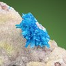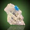 A beautiful, 1,2 cm spherical spray of gemmy royal blue Pentagonite crystals perched on Stilbite matrix from the famous Wagholi Quarry of Pune in India. The single crystals are well formed, sharp edged and gemmy. Pentagonite is the much more rare cousin of Cavansite, technically a "dimorph" which means that it is the same chemistry but a different crystal habit, and therefore a different species. And this is a good sample of such a rare species.