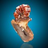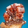 This is typical Moroccan Vanadinite specimen: Sharp, brick red, hexagonal crystals to 1 cm in size with a strong vitreous luster on tabular Barite. A colorful and top aesthetic specimen.