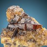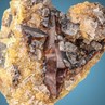 An exciting miniature-sized specimen with a 3.5 cm measuring honey brown scalenohedral Barite crystal embedded in yolk-yellow Calcite. The sharp crystal has naturally re-healed cracks and is doubly terminated. A classic specimen from the eastern flank of the Black Hills in Meader County, South Dakota.