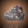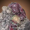 This is a super Tsumeb Mine Cuprit with countless deep red Cuprite octahedrons with a vitreous luster associated with cream-white to white translucent Calcite clusters on matrix. This is a great combination for the locality!