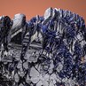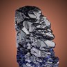 This is a miniature-sized specimen with intense dark blue Azurite crystals measuring up to 1.5 cm, displaying an attractive parallel growth. The crystals on this specimen show many of the over 100 crystal forms that the monoclinic species is known for.